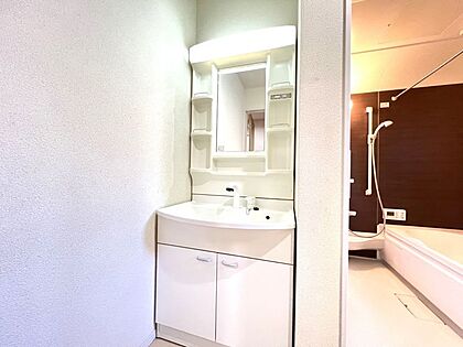 清潔感溢れるスタイリッシュなデザインの洗面化粧台♪小物収納も豊富です!