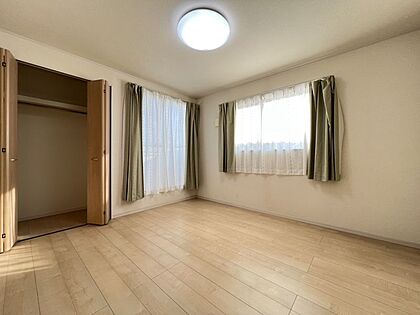 2面採光で明るくて風通しの良い洋室!全室に収納があるので、家族みんなの荷物が片づけられます!