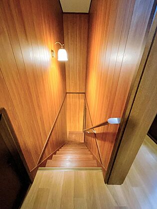 【リフォーム済】リビングから2階へ上がる階段です。