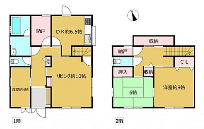 【間取り図】1階には納戸、収納も各室についており収納には困りません、2階にもトイレがあります。