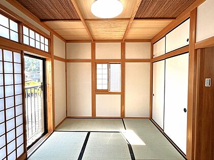 【リフォーム済】2階和室です。畳表替え、壁塗装を行いました。天井が作りこまれたおしゃれな空間です。