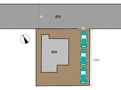 【区画図】駐車場拡張工事を行い普通車3台駐車可能になります。