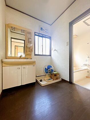 【リフォーム中 9月26日撮影】洗面脱衣所です。洗面化粧台は新品交換し、床はクッションフロア仕上げ、壁・天井はクロス張替を行う予定です。