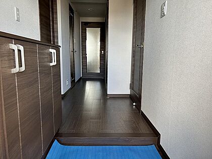 廊下に収納場所があり出かける前の荷物や大きい荷物はこちらに入ります