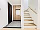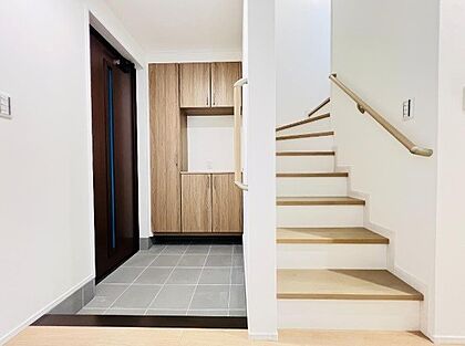 背の高いシューズボックスは、スタンドミラーにもなって全身のコーディネートチェックが可能。朝の身だしなみチェックに最適です。