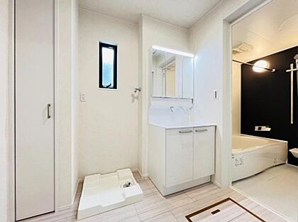 毎日使う洗濯機。しっかりと奥行きのある置き場が確保されています。