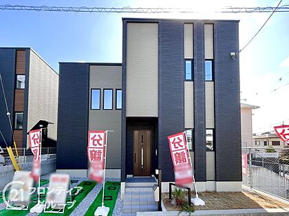 モダンなデザインが魅力の新築戸建てで、スタイリッシュな外観が住む人を引き立て、日々の生活に彩りを添えます