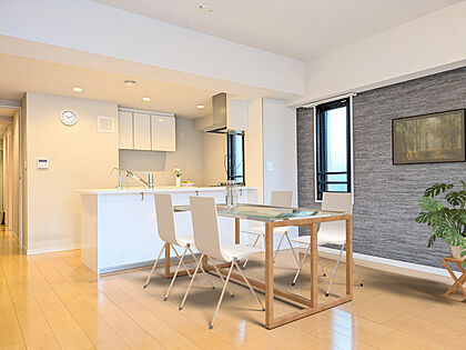 白と木目を基調とした暖かみのある明るいお部屋です。どんな家具とも合わせられます。