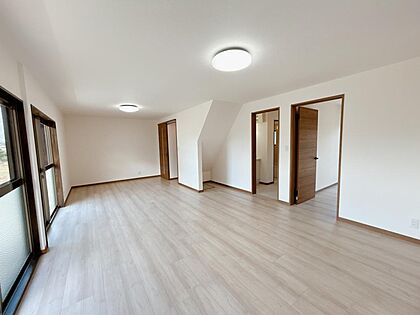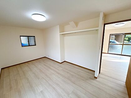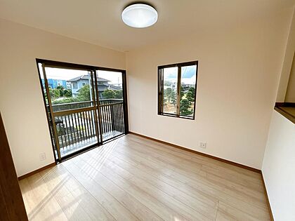 【リフォーム済】2階西側4.5帖洋室です。床はフローリング張を行い、壁・天井のクロスを張替えました。新品の照明器具も設置しました。