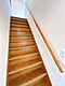 【リフォームすみ】2階へと続く階段です。壁・天井のクロスを張替え、新品の照明器具を設置しました。2階からの明るい光が差し込む空間に生まれ変わりました。
