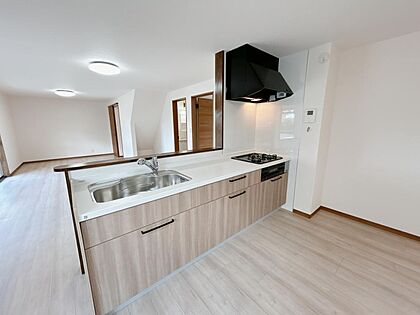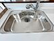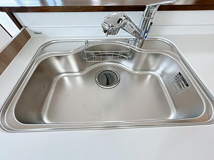 【シンク】新品キッチンのシンクはサビにくく熱に強いステンレス製です。水はねの音を抑える静音設計で、従来よりもさらに水音が静かになっています。