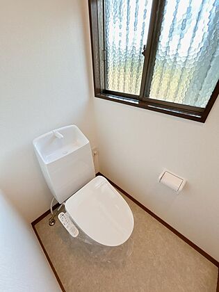 【トイレ】ジャニス製の温水洗浄機能付きに新品交換しました。表面は凹凸がないため汚れが付きにくく、継ぎ目のない形状でお手入れが簡単です。節水機能付きなのでお財布にも優しいですね。