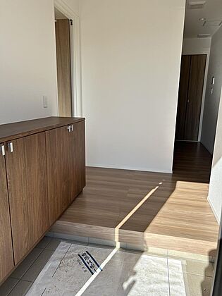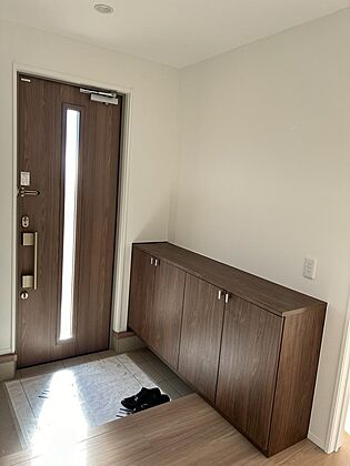 •  下駄箱はカウンタータイプです。コンセントも完備してますので、玄関先のコーディネートに自由に使用できます。