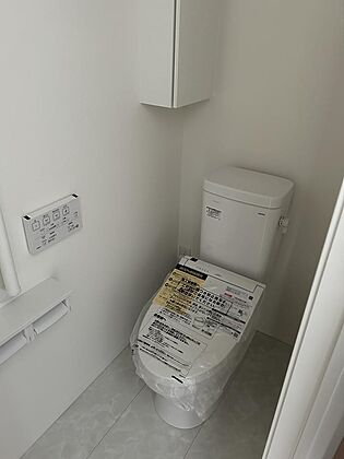 •  トイレにも収納があります。買置きのトイレットペーパーや掃除用具を保管できます。