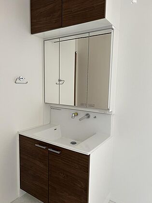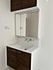 •  3面鏡付きの洗面化粧台です。鏡裏は収納になってます。