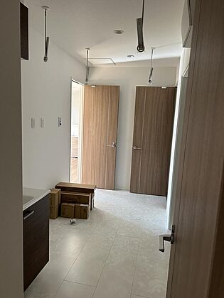 •  洗面室には室内物干し用金具が2セットあります。雨の日でも室内に洗濯物を干せます。