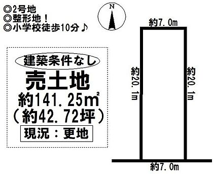 | 土地面積/坪(坪単価) | 141.25m2(実測)/42.8坪(32.70万円) | 代表的な接道 | 公道 南 5.6m ※詳細は備考欄をご確認ください |
