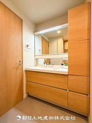 •  【洗面化粧台】広々とした洗面化粧台はたっぷり収納もさるますし、朝の忙しい時間でも心に余裕とゆとりを作ってくれます。