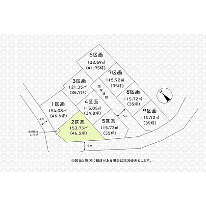 | 土地面積/坪(坪単価) | 153.73m2(登記簿)/46.58坪(40.80万円) | 代表的な接道 | 二方 公道 西 4m、南 4m ※詳細は備考欄をご確認ください |