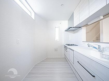 リビングダイニングが見渡せるカウンターキッチン! お料理をする人も開放感が心地いいです。