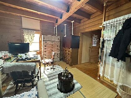 玄関前のウッドデッキが自然に囲まれたログハウスの雰囲気を高まてくれます!