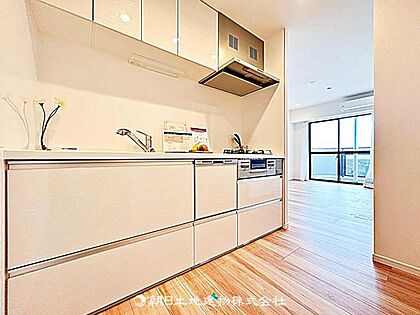 清潔感と機能性を兼ね備えた、爽やかな白のキッチンスペース