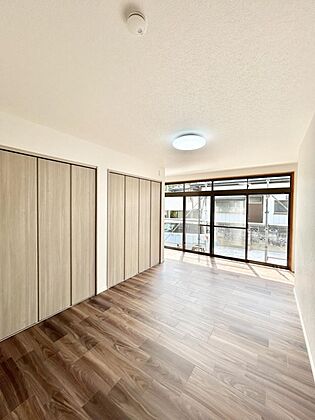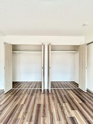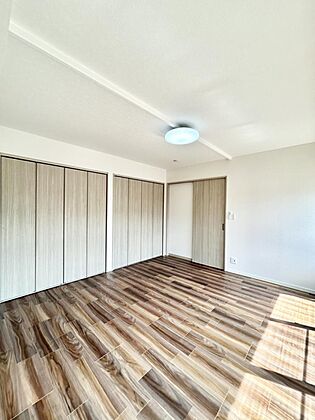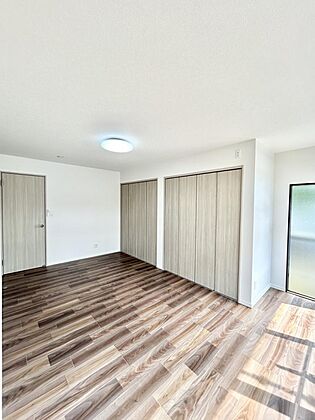 【リフォーム済】一階洋室を別角度から撮影しました。畳からフローリングに張り替えを実施しました。クローゼットが二つもついているので、収納に困りませんね。