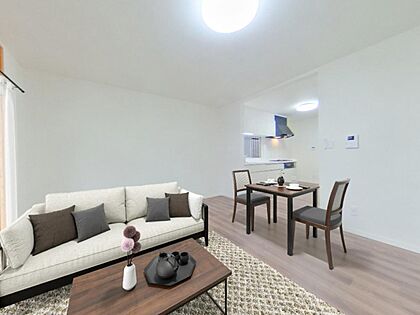 【リフォーム済】約16帖のリビングを撮影しました。フローリングは張り替え、天井・壁のクロスについても張替を行います。