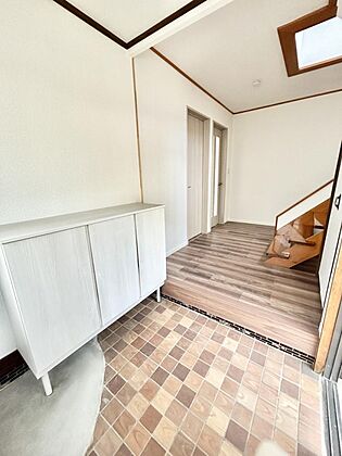 【リフォーム済】玄関内部を撮影しました。リビングにも、水廻りにも行きやすい動線となっております。