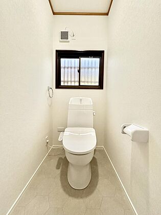 【リフォーム済】トイレは新品に交換済みです。直接お肌に触れる部分なので、新品だと嬉しいですね。便座は温度調整ができるので、寒い冬場でも安心して利用できます。