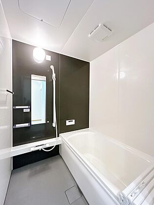 【リフォーム済】ユニットバスは新品に交換しました。浴槽は大人も足を伸ばしてゆったり浸かれる広さです。