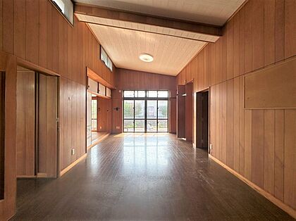 【現況写真】キッチンを背にしてリビングを見た写真です。和室の襖を開けることでより開放的ですね。