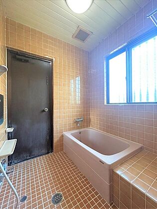 【現況写真】浴室の写真です。浴室内には窓と勝手口がございます。換気が充分にできてお掃除がはかどりそうです。