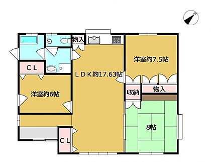 【現況間取図】LDK18帖を含む3LDKのお家です。