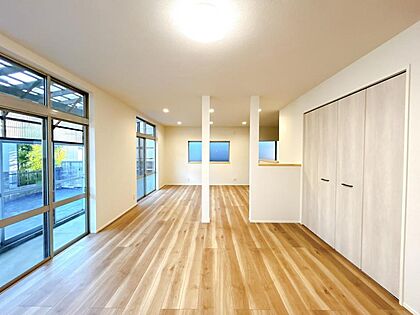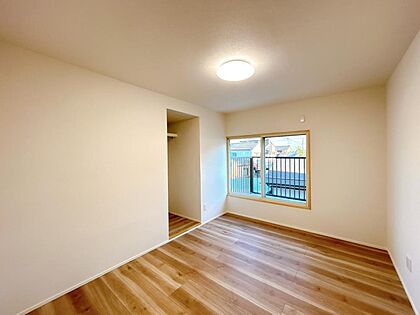 【リフォーム済】2階洋室12.75帖を別アングルから撮影。クローゼット収納を2か所新設しました。お洋服や小さな収納ケースなども収納していただけます。