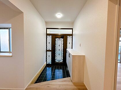 【リフォーム済】玄関はシューズボックスを新設。棚板は消臭効果付き。また、棚板の高さも調整でき便利な商品です。清潔感のある玄関でお客様を最初におもてなしできますね。