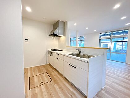 【リフォーム済】既存のキッチンは撤去し、ハウステック製のシステムキッチンを新設しました。傷のつきにくい人工大理石の天板と大きなシンクでお手入れもラクラクですよ