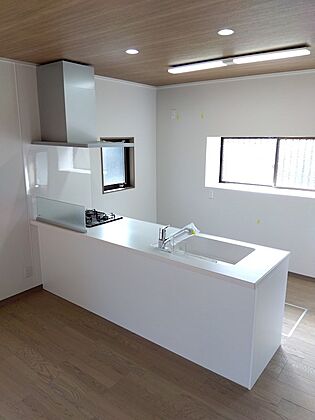 •  料理中でもキッチンからリビングに目を配れる作りです。小さなお子様のいるご家庭でも安心ですね