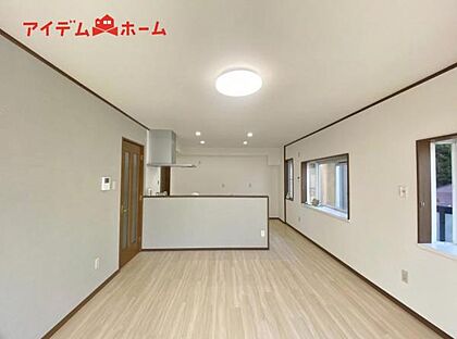 大きく開いた窓からは、明るい陽射しが射し込みます。 自然と家族が集まる空間です。