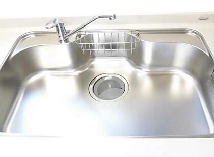 【同仕様写真/キッチン】新品交換予定のキッチンのシンクはサビにくく熱に強いステンレス製です。水はねの音を抑える静音設計で、従来よりもさらに水音が静かになっています。
