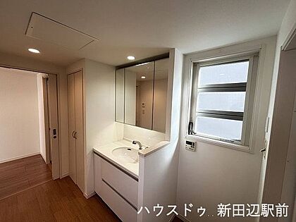 浴室には大きな鏡があるので、お化粧を落としたり、ひげを剃ったり使い勝手が良さそうですね。