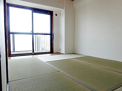 【和室6.8帖】 大きな窓から柔らかな光が降り注ぎ、明るさが室内の奥まで行き渡ります。 (クロス張替え、畳表替え、襖張替え済)