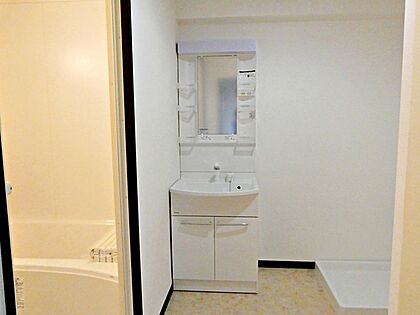 シャワー付きの洗面化粧台。忙しい朝にも便利ですね。