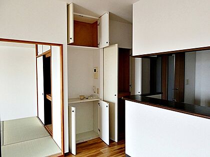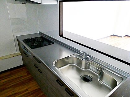 ダイニングに面した対面式キッチンはできたてのお料理がすぐテーブルに出せます。(クロス張替え、床フロアタイル上張り済)