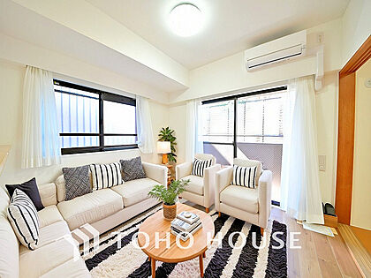 大きな窓があるリビングは、たくさんの陽射しをお部屋に取り入れます(家具は全てCGです)