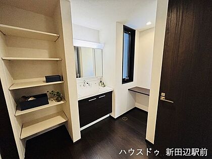 小物が多い洗面所にも備え付けの収納棚、いつでもスッキリ見せることができますね♪