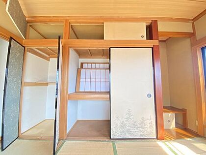 和室部分収納、部屋の雰囲気をに沿った天井まで繋がるお洒落な収納♪