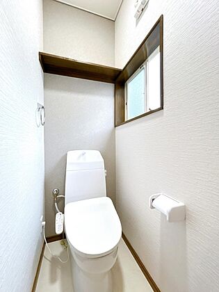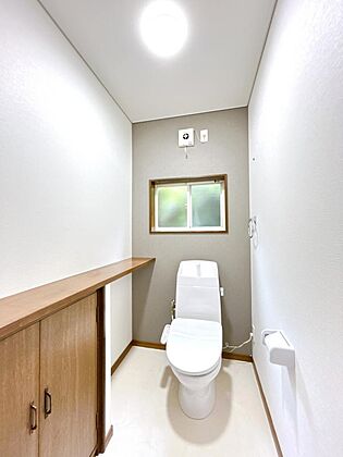 【リフォーム済】2階トイレです。トイレは新品交換し、壁・天井のクロスを張替え、床はフローリングシートを張り変えました。2階にもトイレがあるのは嬉しいですね。