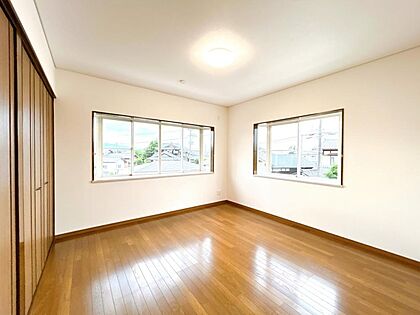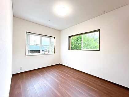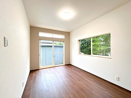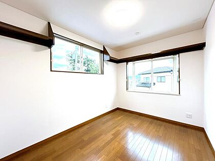 【リフォーム済】2階南側6帖洋室です。床はフローリング張替え、壁天井クロス張替え、照明交換、クリーニングを行いました。