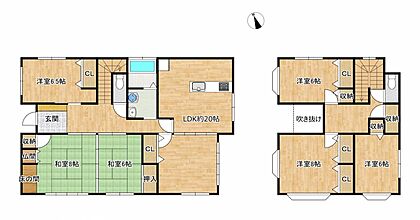 間取り図です。6LDKと部屋数が豊富ですので、部屋数や収納には困りません。